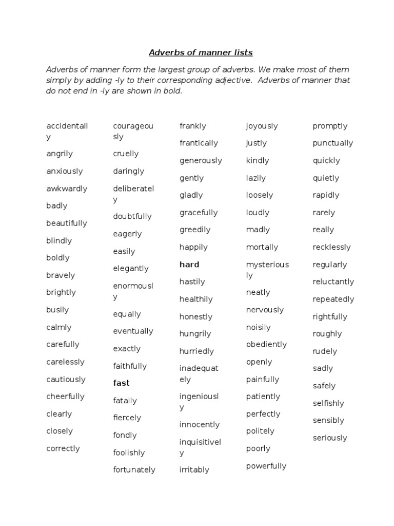 Adverbs Of Manner - There are five types of adverbs:. When my teacher talks too ___, it's difficult to. Read on to see how each one functions in a sentence! Adverbs of manner tell us the manner or way in which something happens. Lesson by seb, teacher at ec cape town english school. How to use adjectives and adverbs.